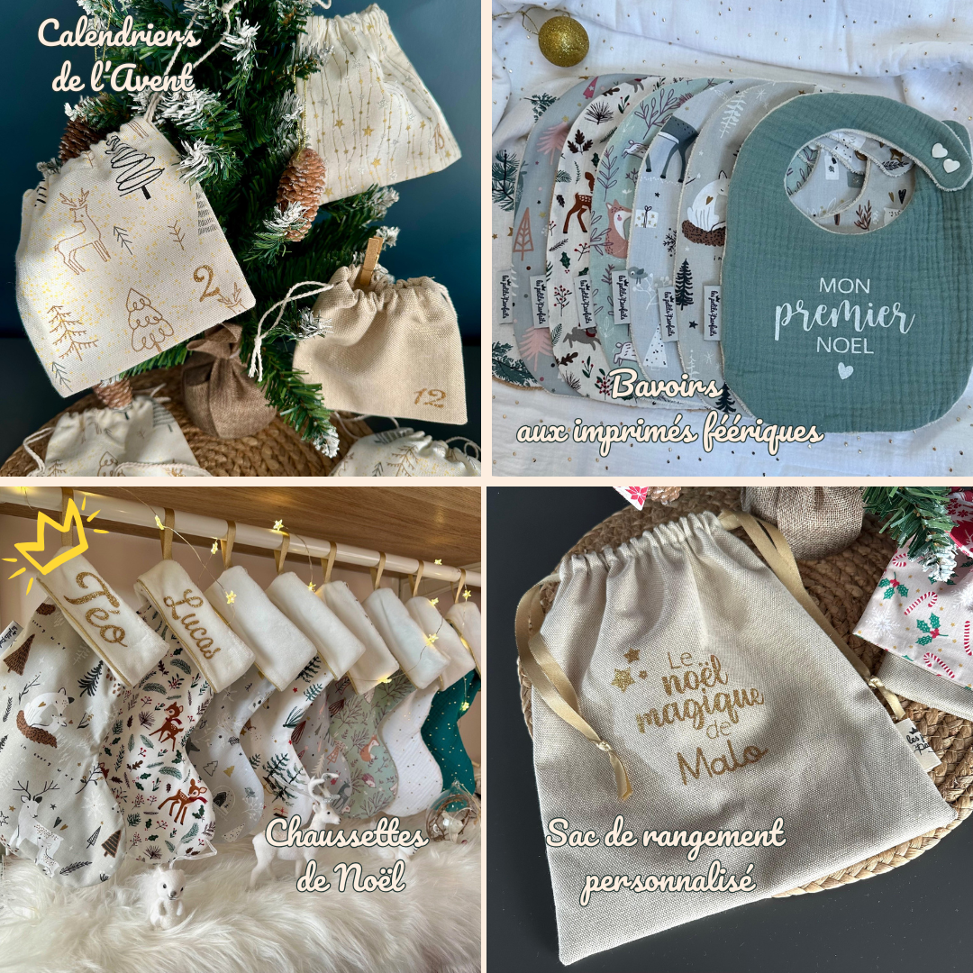 Des Bavoirs festifs, Chaussettes de Noël avec prénom et Calendriers de l’Avent en tissu faits main avec soin pour émerveiller petits et grands 💖