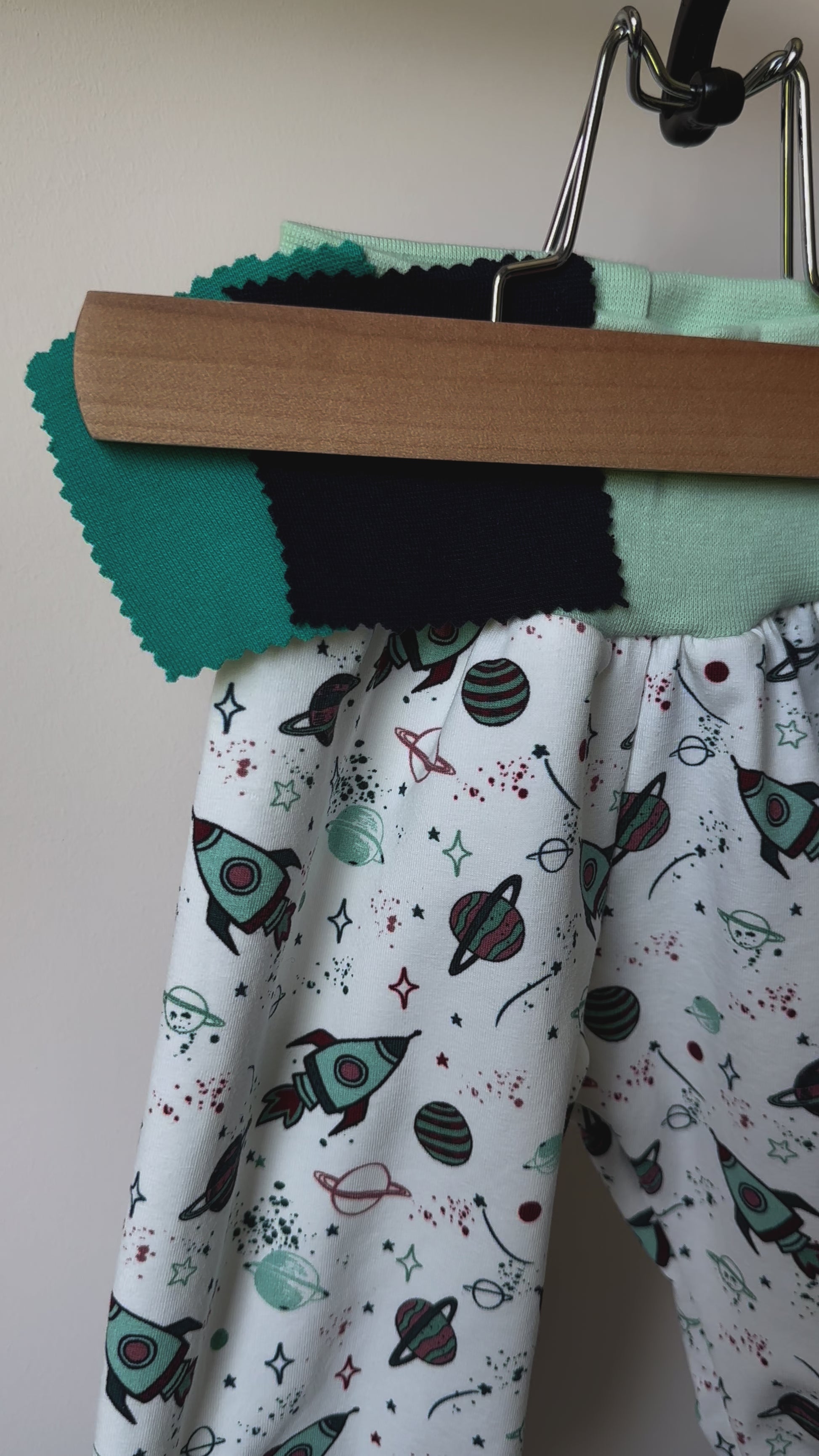Les bandes aux chevilles et à la taille se plient/déplient pour s’adapter parfaitement à la croissance de bébé. Résultat : un pantalon pratique et durable qui suit bébé pendant plusieurs mois 👶♻️