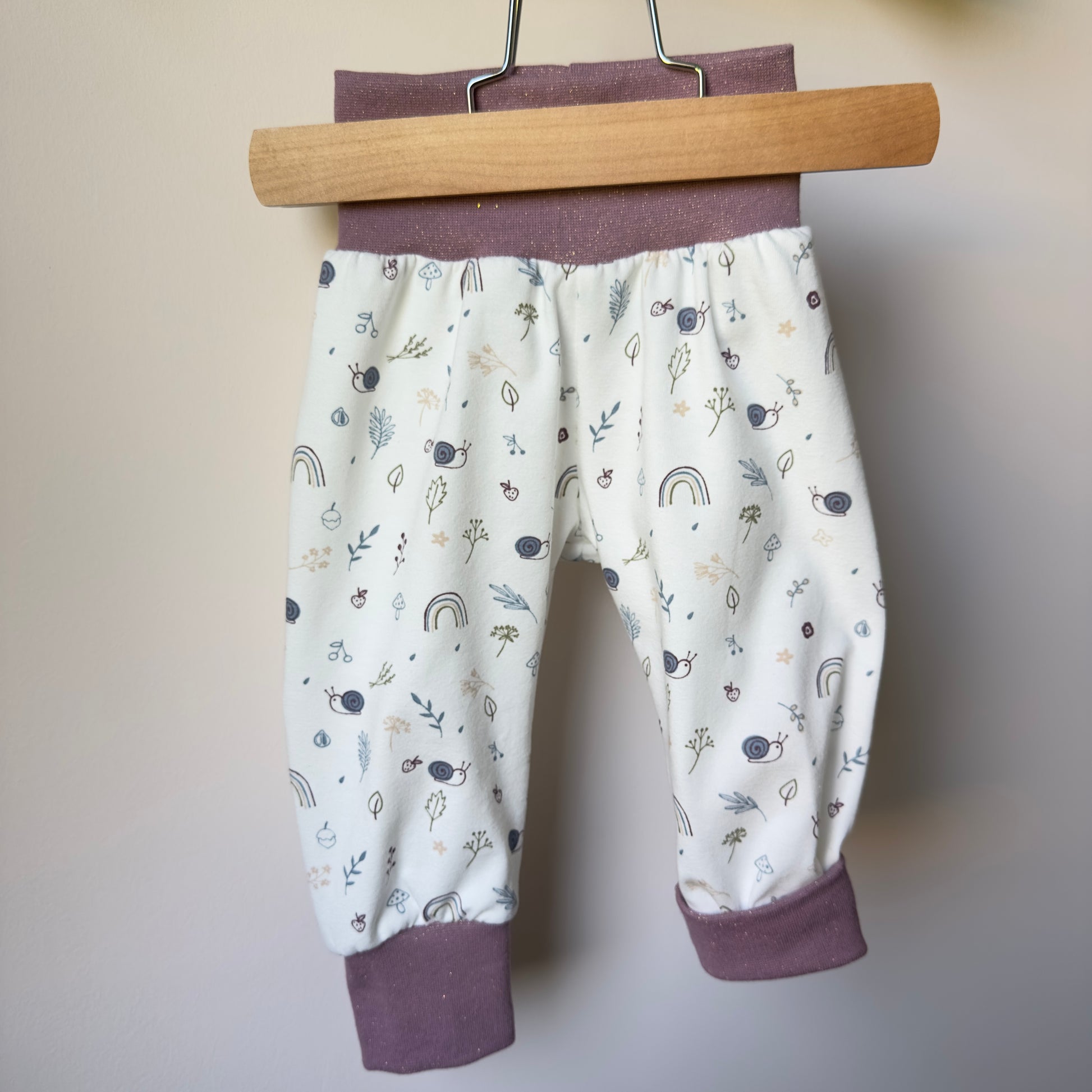 Douceur et poésie s’invitent dans la garde-robe de bébé avec ce joli motif d’escargots aux teintes mauve rosé sur fond blanc 🐌🌿